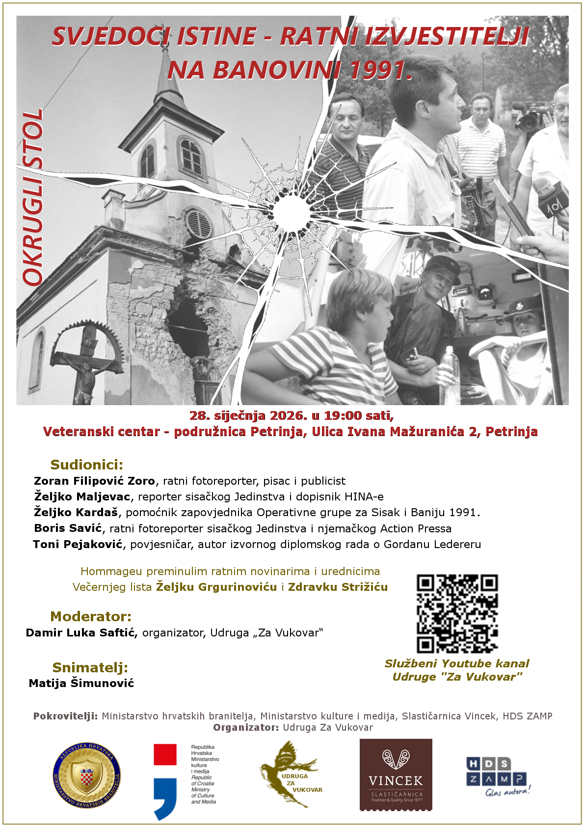 U petrinjskom Veteranskom centru je 28. siječnja u organizaciji Udruge “Za Vukovar”, a povodom Međunarodnog dana zaštite osobnih podataka, održan okrugli stol pod nazivom “Svjedoci istine – ratni izvjestitelji na Banovini 1991.”
