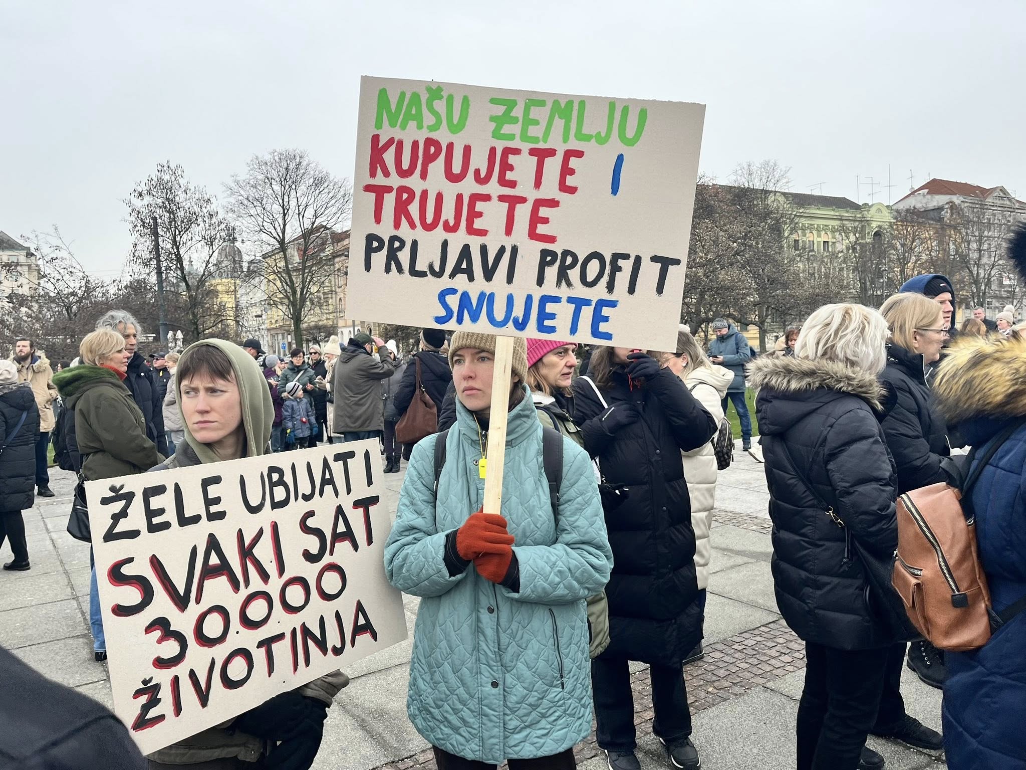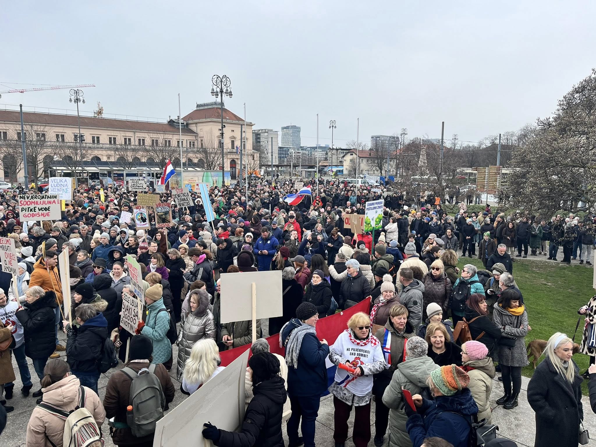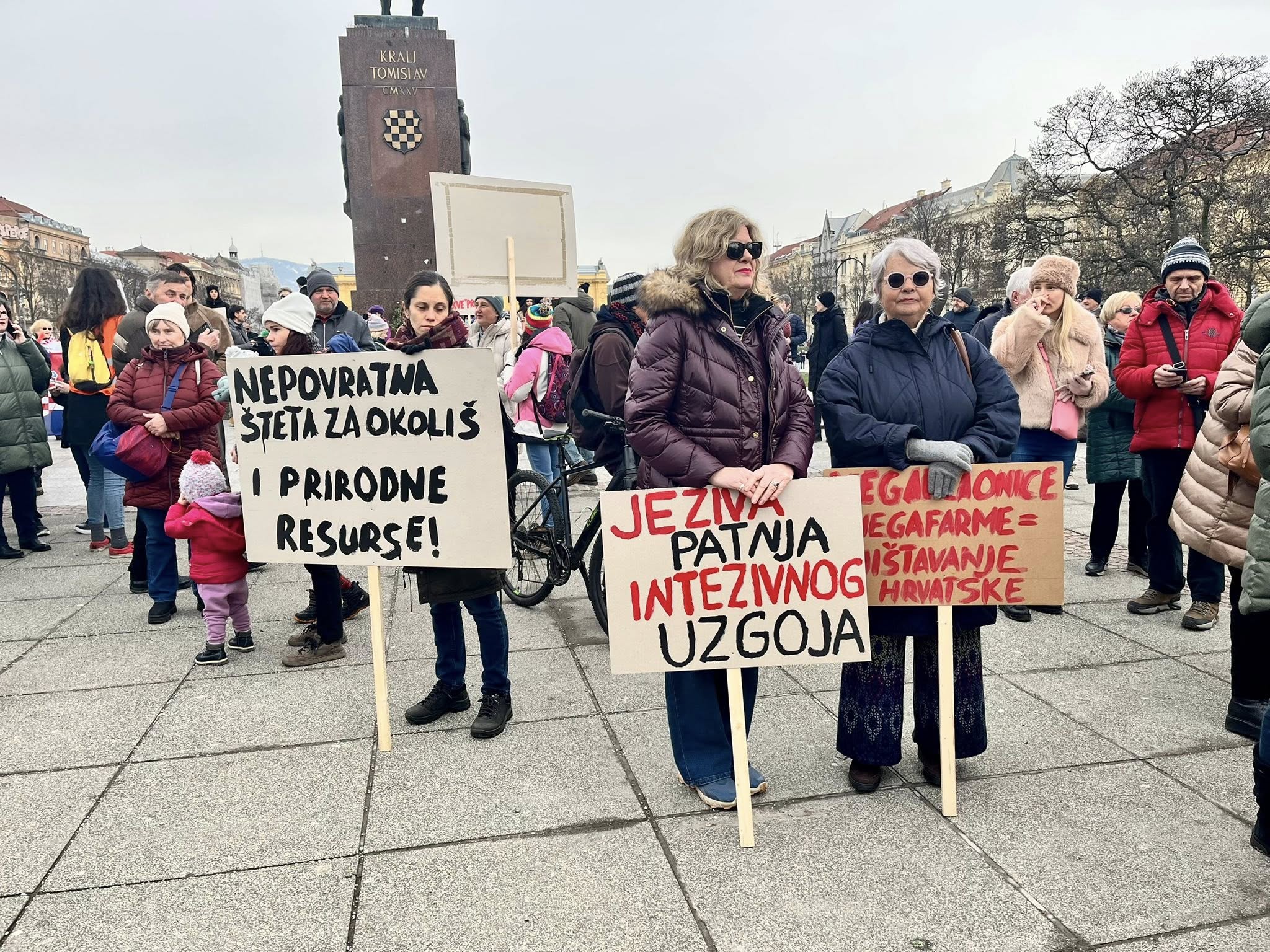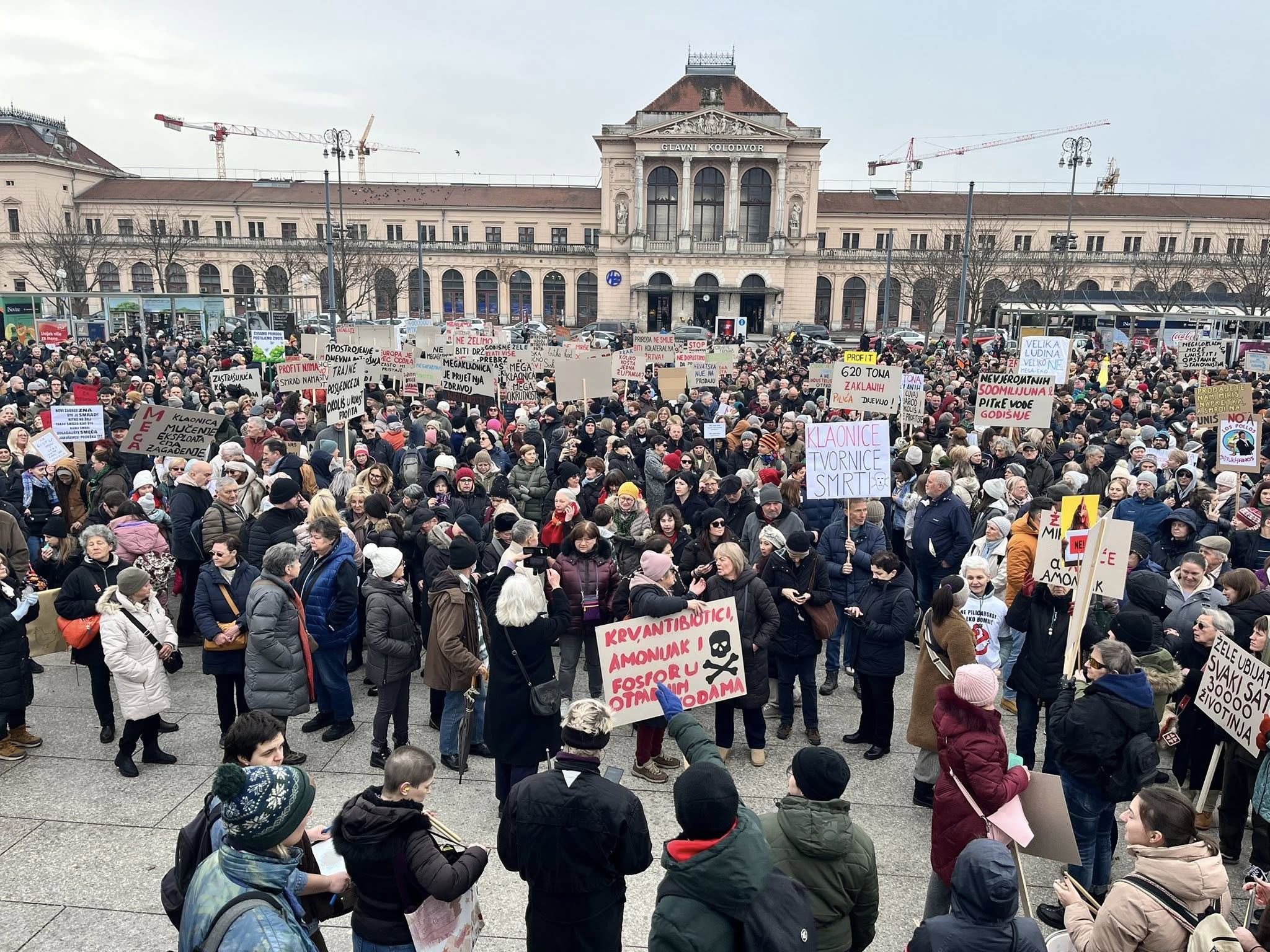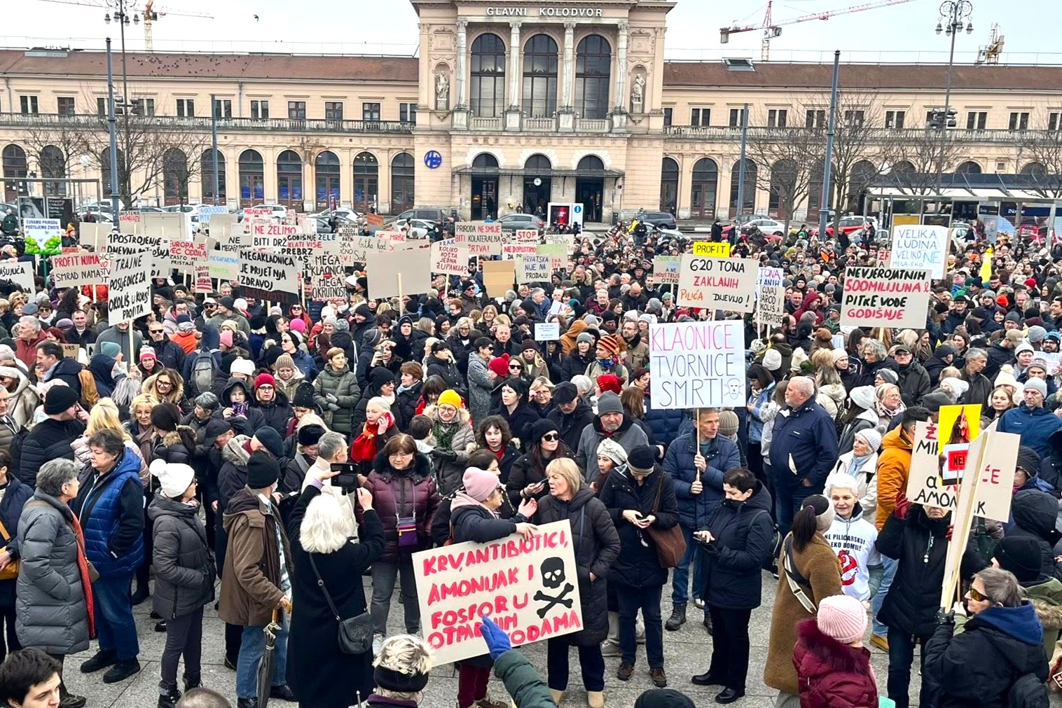 Više tisuća prosvjednika okupilo se u središtu Zagreba na prosvjedu protiv peradarskog kompleksa koji bi trebao biti izgrađen diljem Sisačko – moslavačke županije.