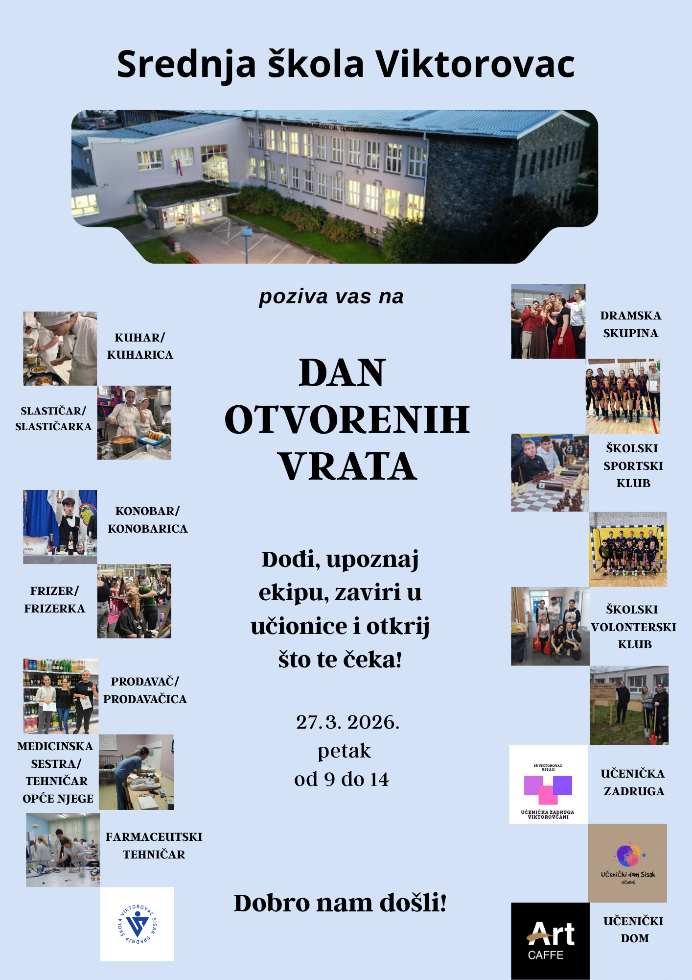 Srednja škola Viktorovac Sisak organizira Dan otvorenih vratapetak, 27. ožujka 2026. godine od 9.00 do 14.00 sati.