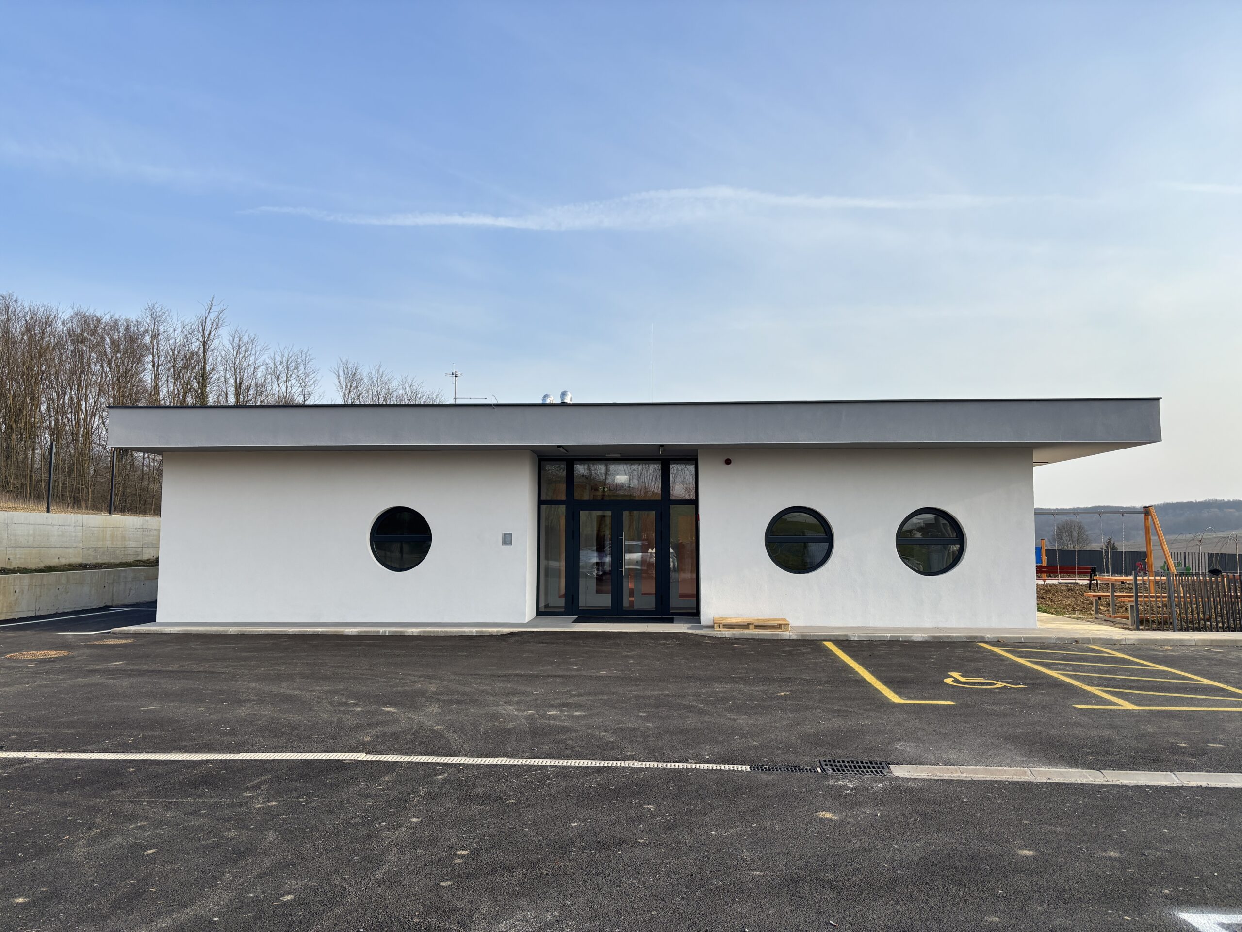 Svi unutarnji i konstrukcijski radovi na objektu su završeni, uključujući izgradnju, instalacije i opremanje prostora, čime je osigurana puna funkcionalnost objekta. Završna faza obuhvaća uređenje vanjskog prostora, izvedbu dječjeg igrališta, hortikulturno uređenje i pristupne površine, koje su ključne za cjelovitu uporabnu vrijednost objekta.